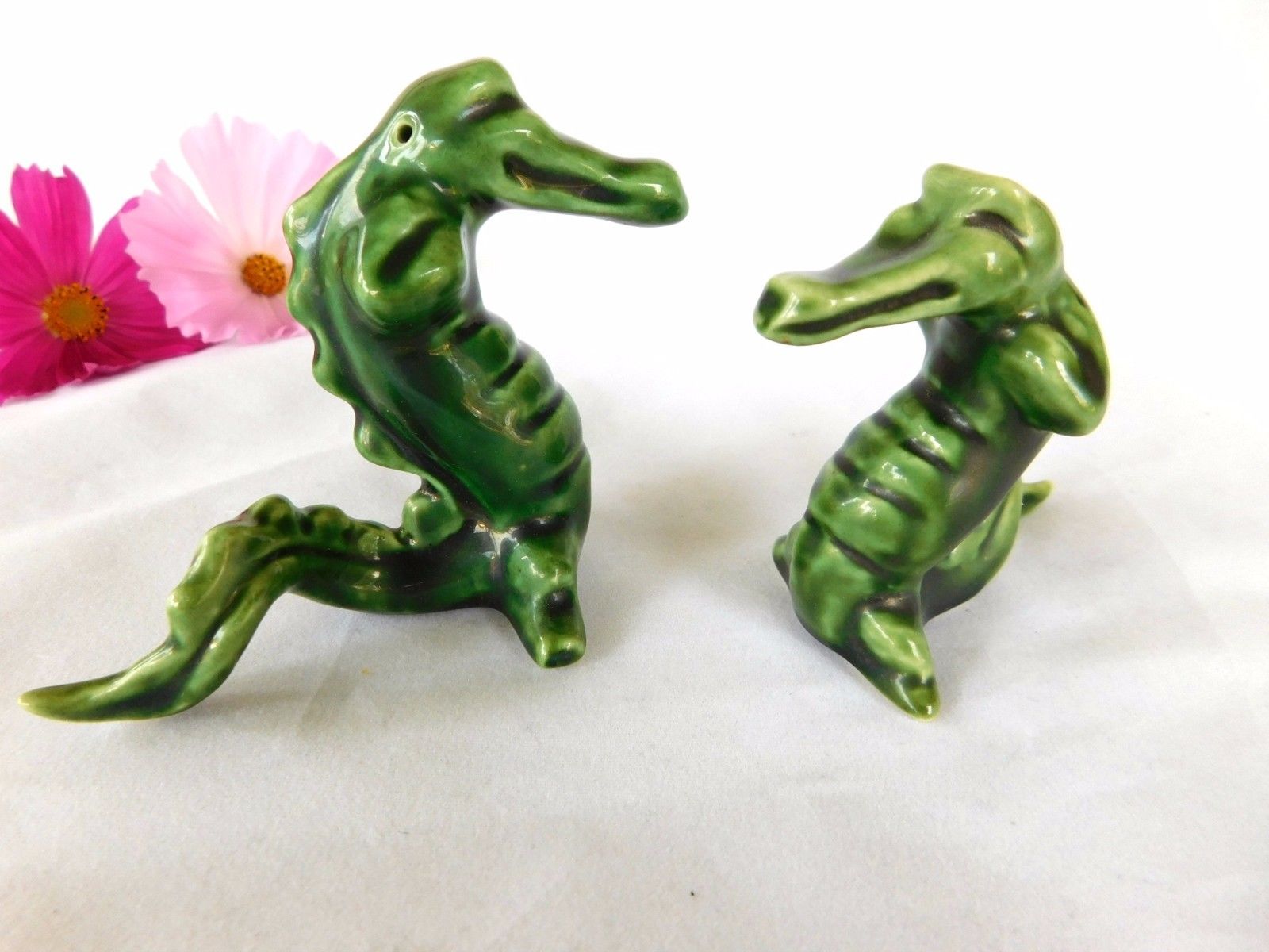 Title (ebay affiliate link): 3.25" Whiteware GREEN ALLIGATORS Salt & Pepper Shaker 1950''s era Florida Gator