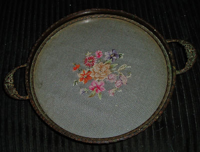 Antique Floral Petit Point Austrian Vanity Jewelry Tray