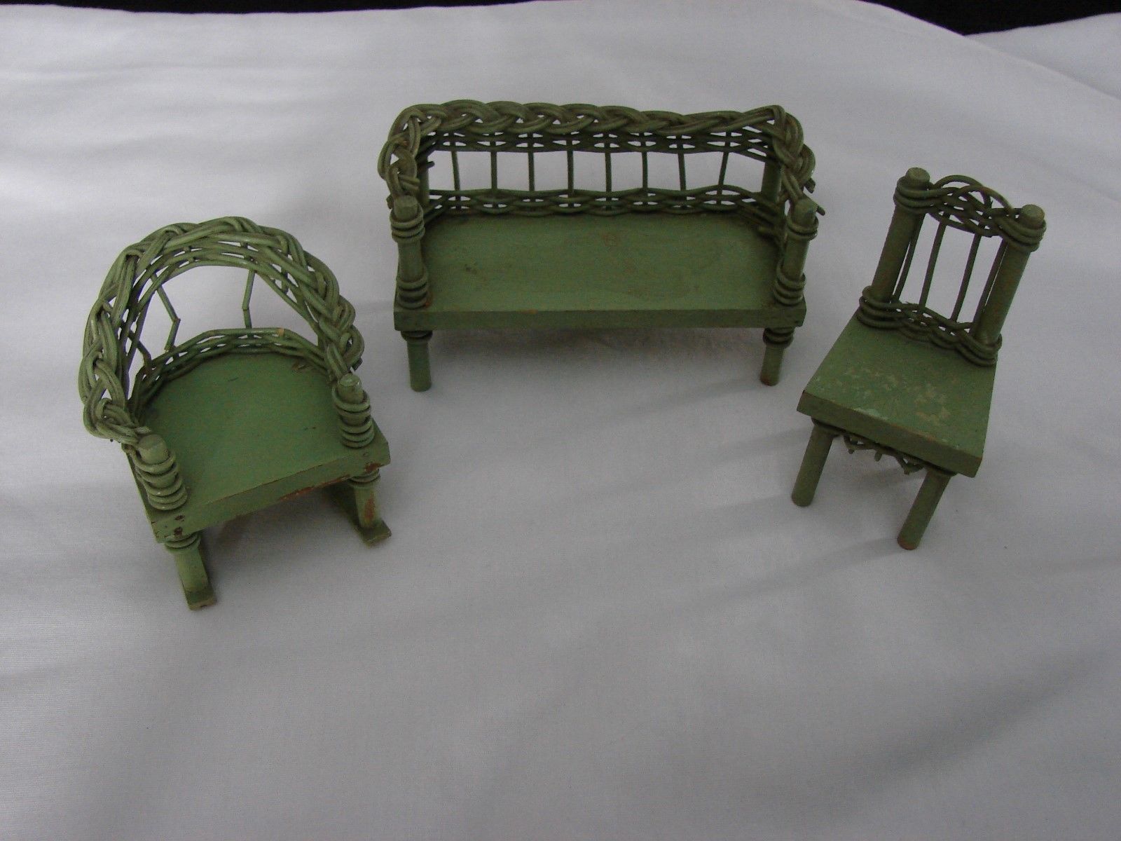 Antique doll house furniture 3 piece wicker set