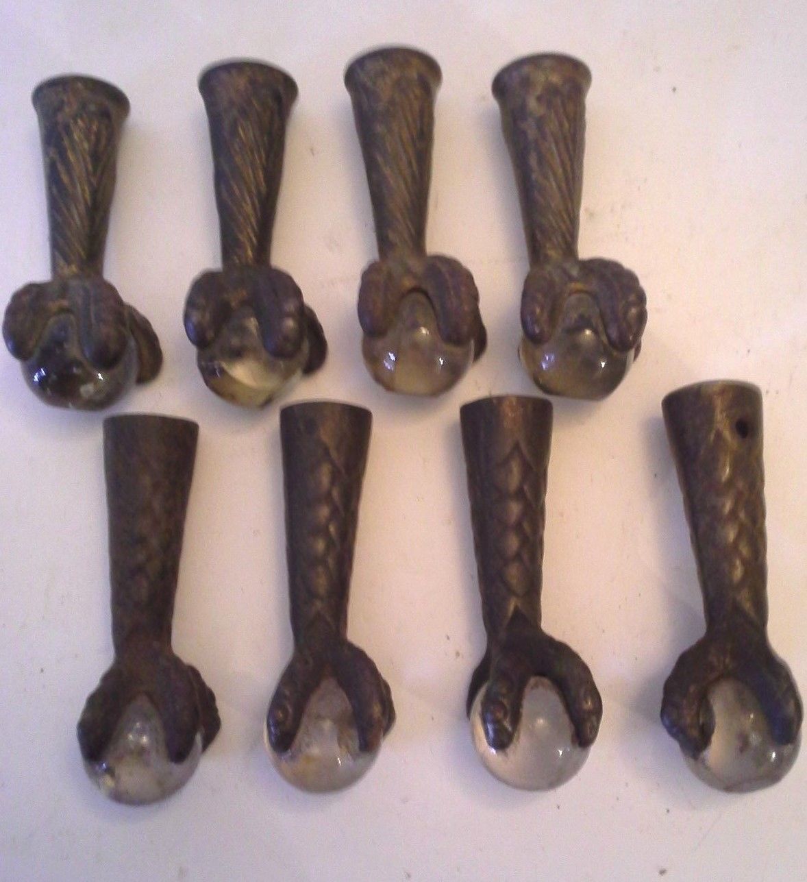 Title (ebay affiliate link): EIGHT VINTAGE CAST IRON CLAW TALONS,GLASS BALL FEET FOR TABLE , PIANO-TWO SETS
