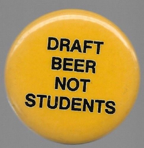 Title (ebay affiliate link): DRAFT BEER NOT STUDENTS ANTI VIETNAM WAR POLITICAL PROTEST PIN