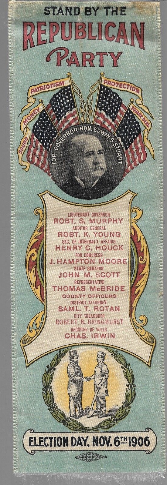Title (ebay affiliate link): EDWIN STUART FOR GOVERNOR 1906 PENNSYLVANIA REPUBLICAN CAMPAIGN RIBBON