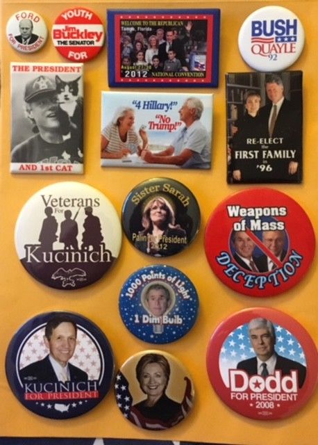 Title (ebay affiliate link): Fourteen Different Presidential Political Campaign Pin Buttons