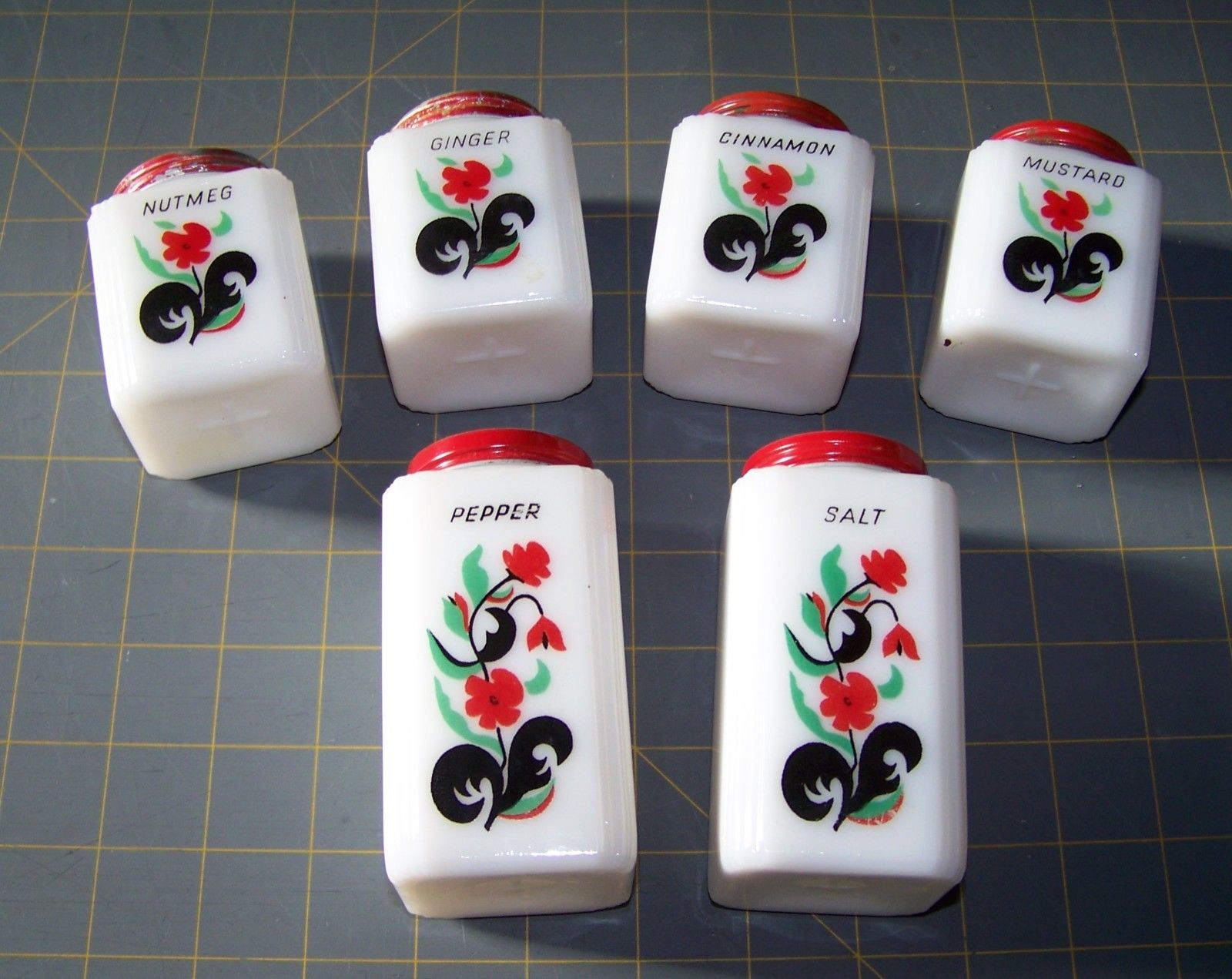 Vintage Milk Glass Spice Jar Salt and Pepper Set 6 pieces