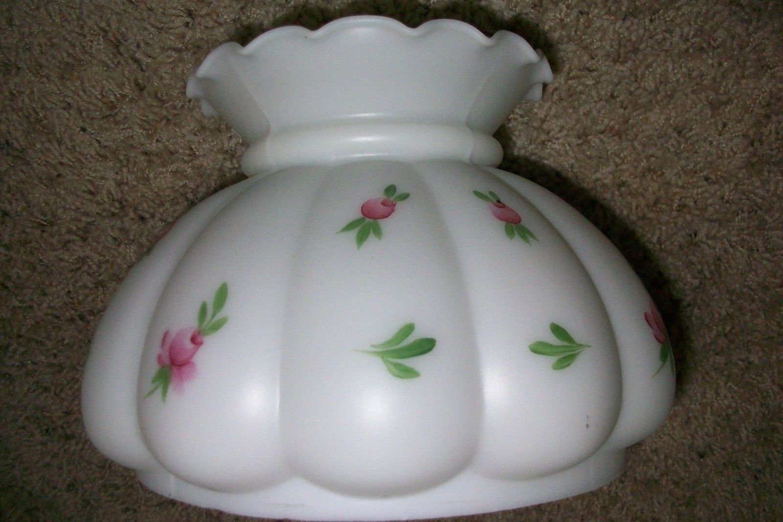 Title (ebay affiliate link): VINTAGE GLASS LAMP SHADE GLOBE TO FIT 7 IN OPENING WHITE MILK GLASS W/FLOWERS