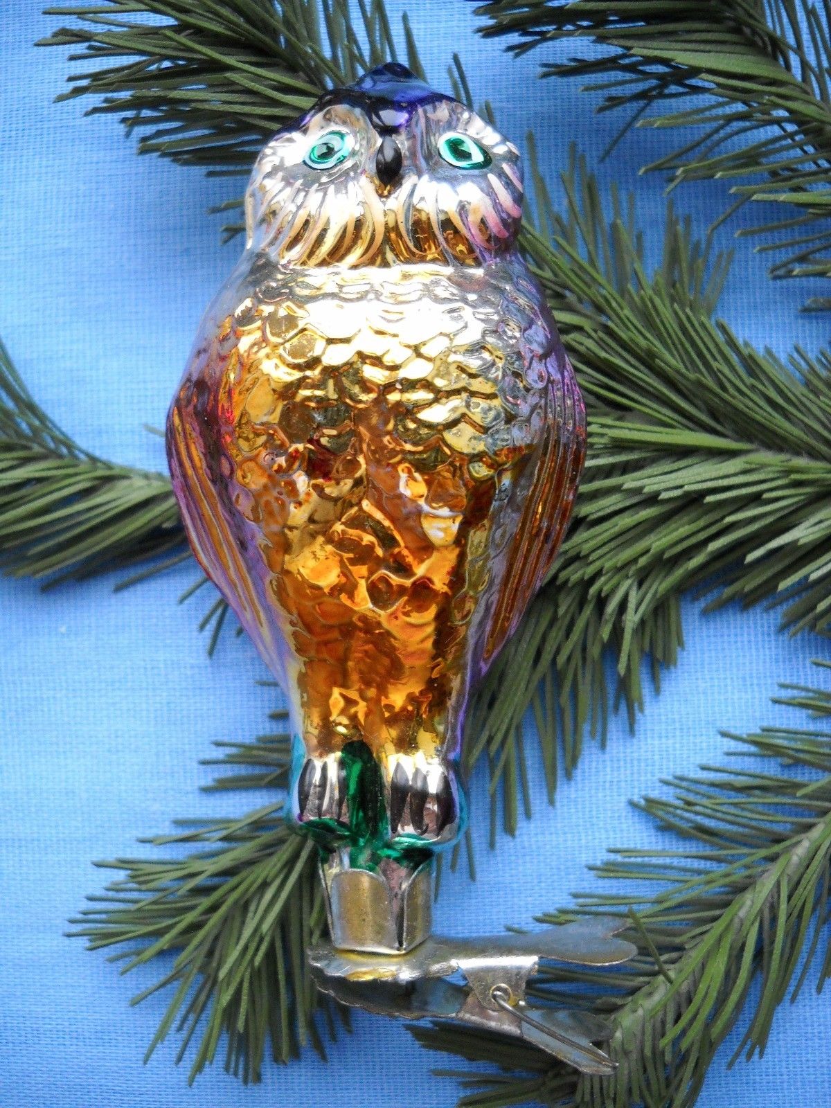 RUSSIAN ANTIQUE GLASS CHRISTMAS ORNAMENT OWL