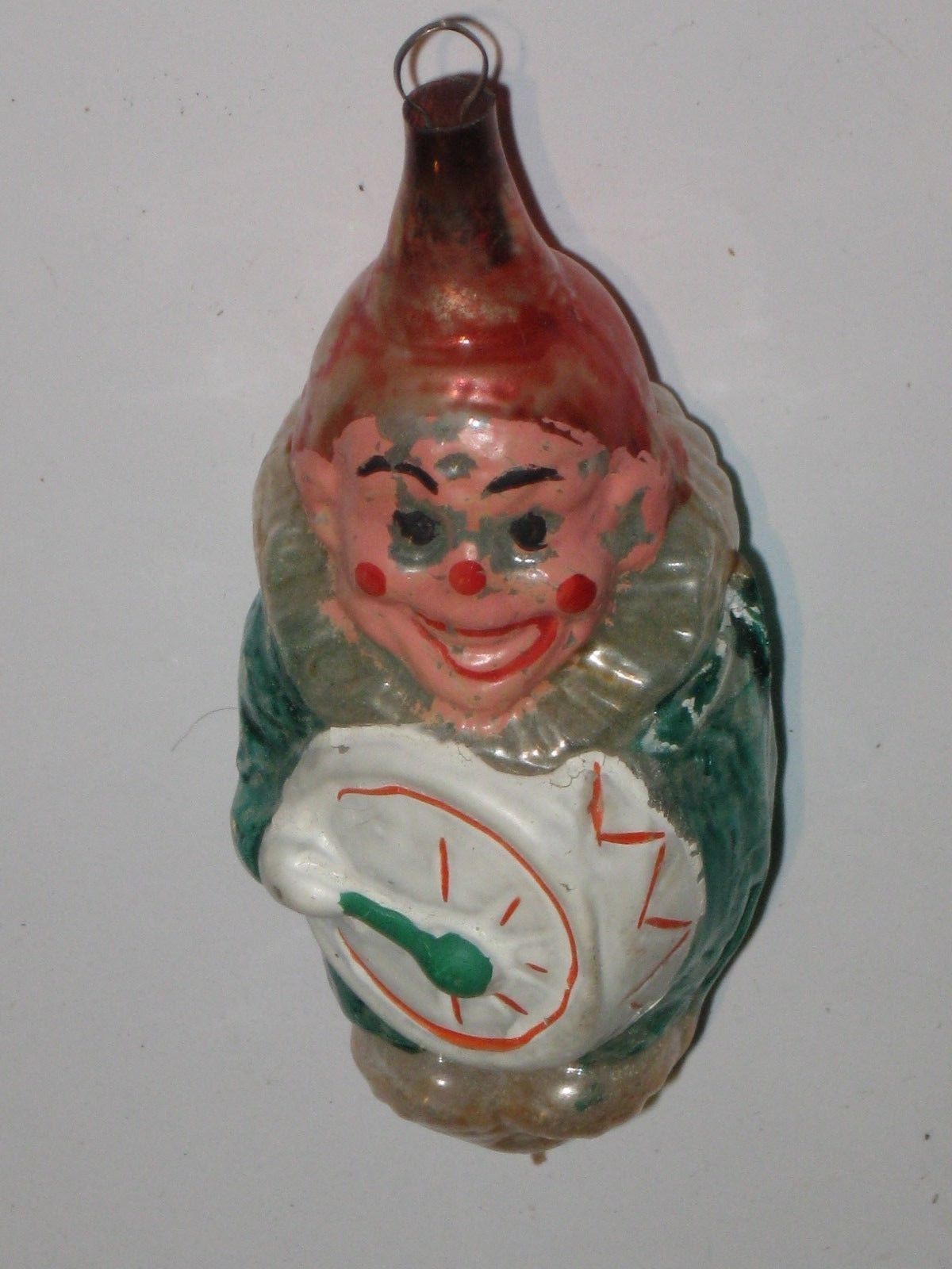 Title (ebay affiliate link): VERY COLORFUL VINTAGE GLASS CHRISTMAS ORNAMENT OF CLOWN BEATING A DRUM 1920''S?
