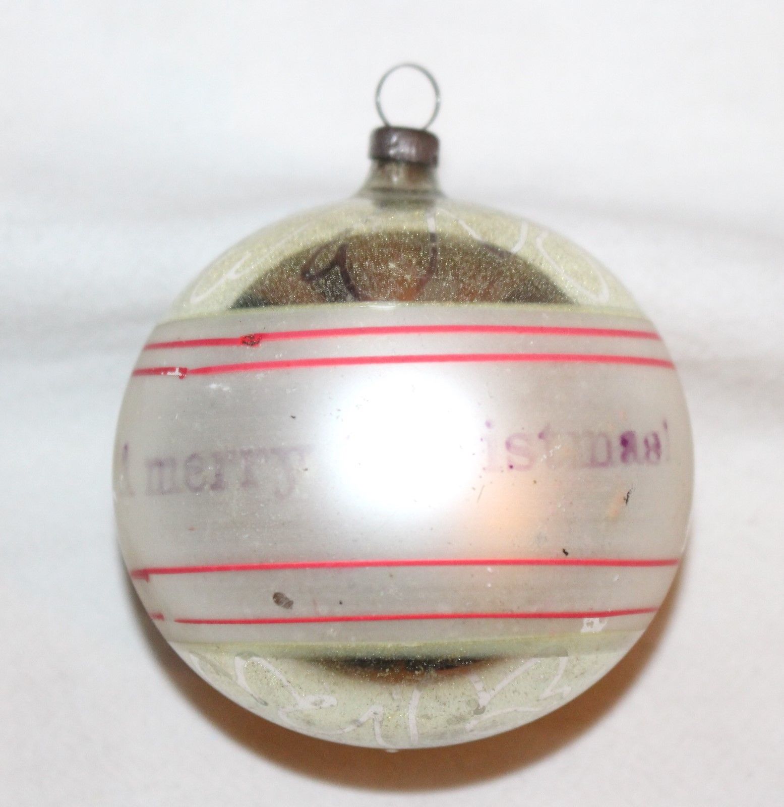 Title (ebay affiliate link): Pearl & Gold Sphere. MERRY CHRISTMAS stenciled. 1920s German Glass Ornament.