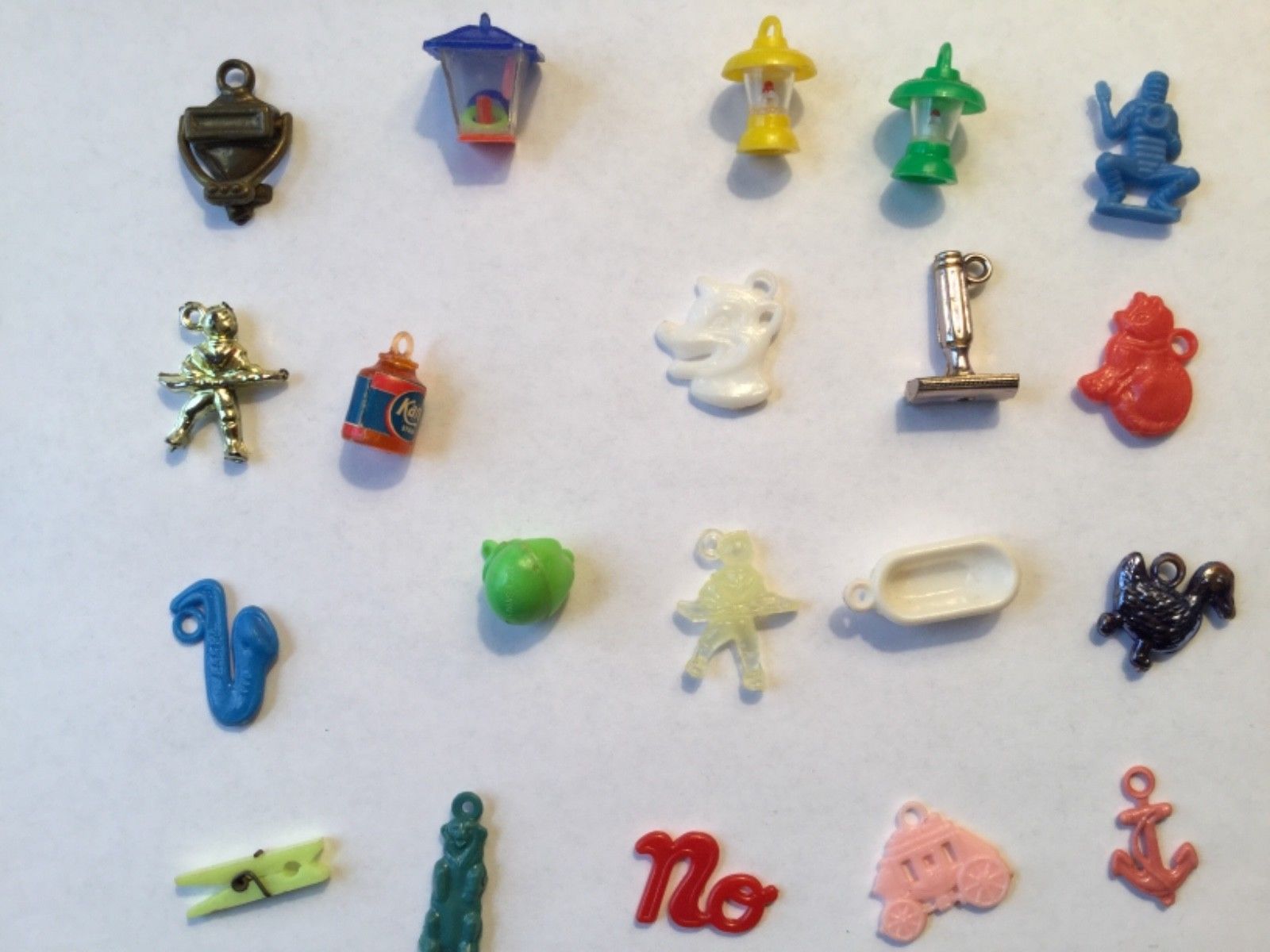 Title (ebay affiliate link): Vintage 20 Cracker Jack Toys Gum Ball Charms Trinkets Premiums Lot