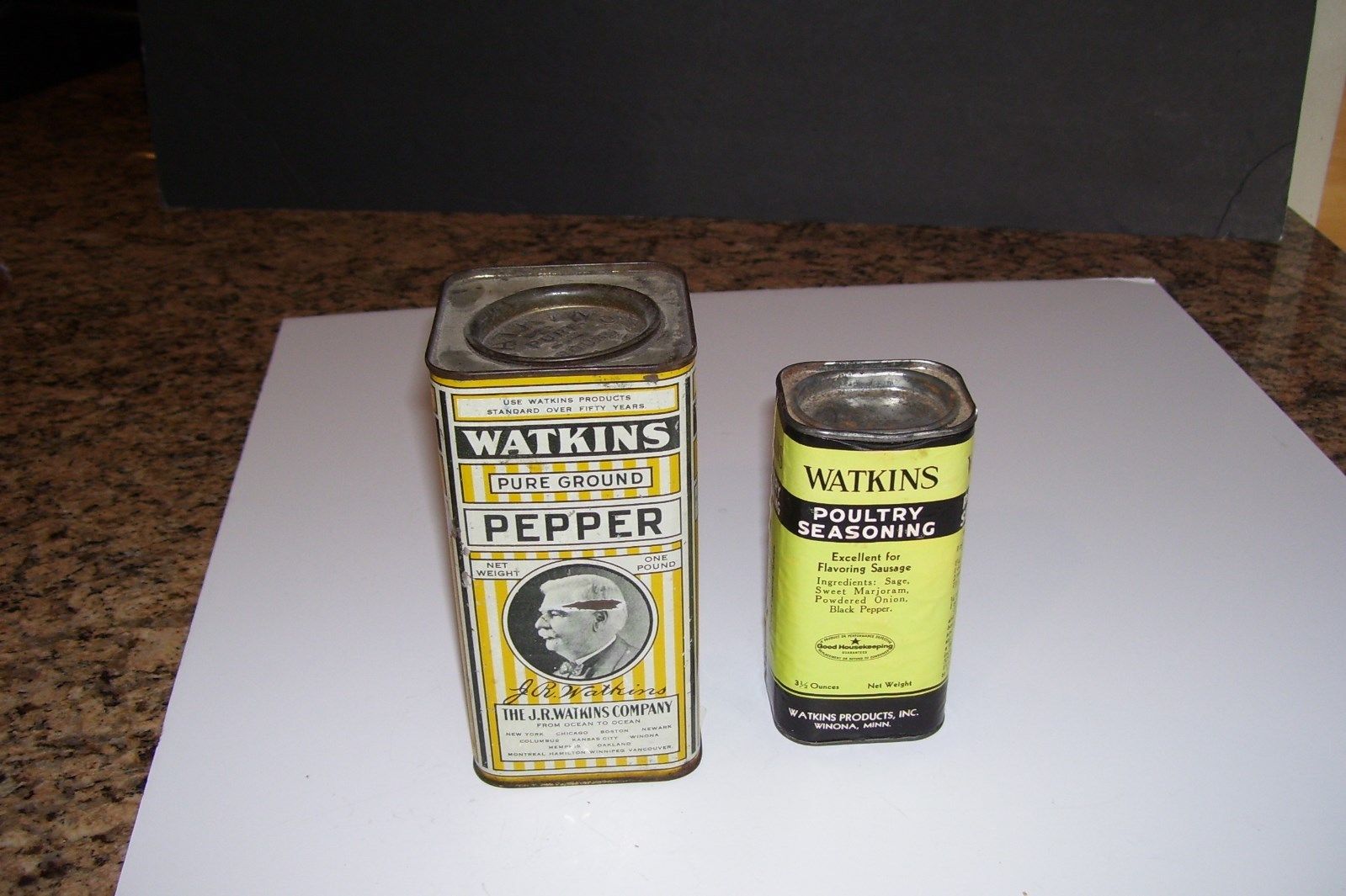 2 Vintage/Antique WATKINS TINS-Poultry Seasoning & Pepper