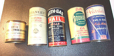 Title (ebay affiliate link): Vintage Moth Crystal Tin Lot of 5 Cans Dills Hail Stanley 1952 - MIS656