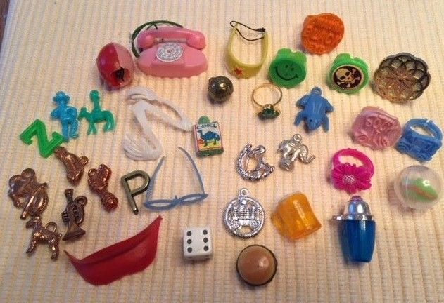 Title (ebay affiliate link): Vintage Lot 30+ Charms Gumball Prizes Toys Cracker Jack Pieces Hong Kong #1