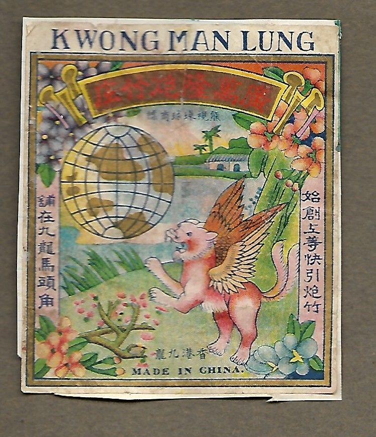 1930`S KWONG MAN LUNG CHINA FIRECRACKER LABEL OR MATCHBOX PACKET LABEL
