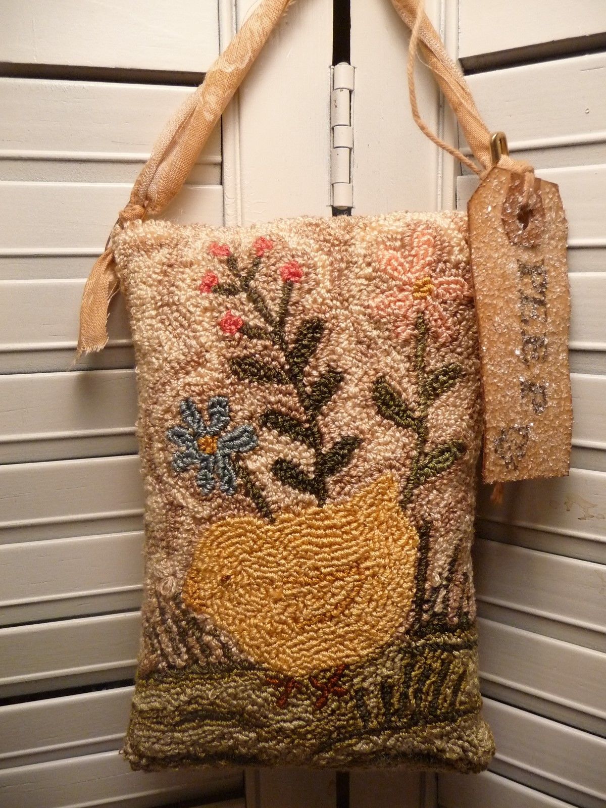 Primitive" Little Chick" Punch Needle Door Hanger-Pin Keep_-Easter