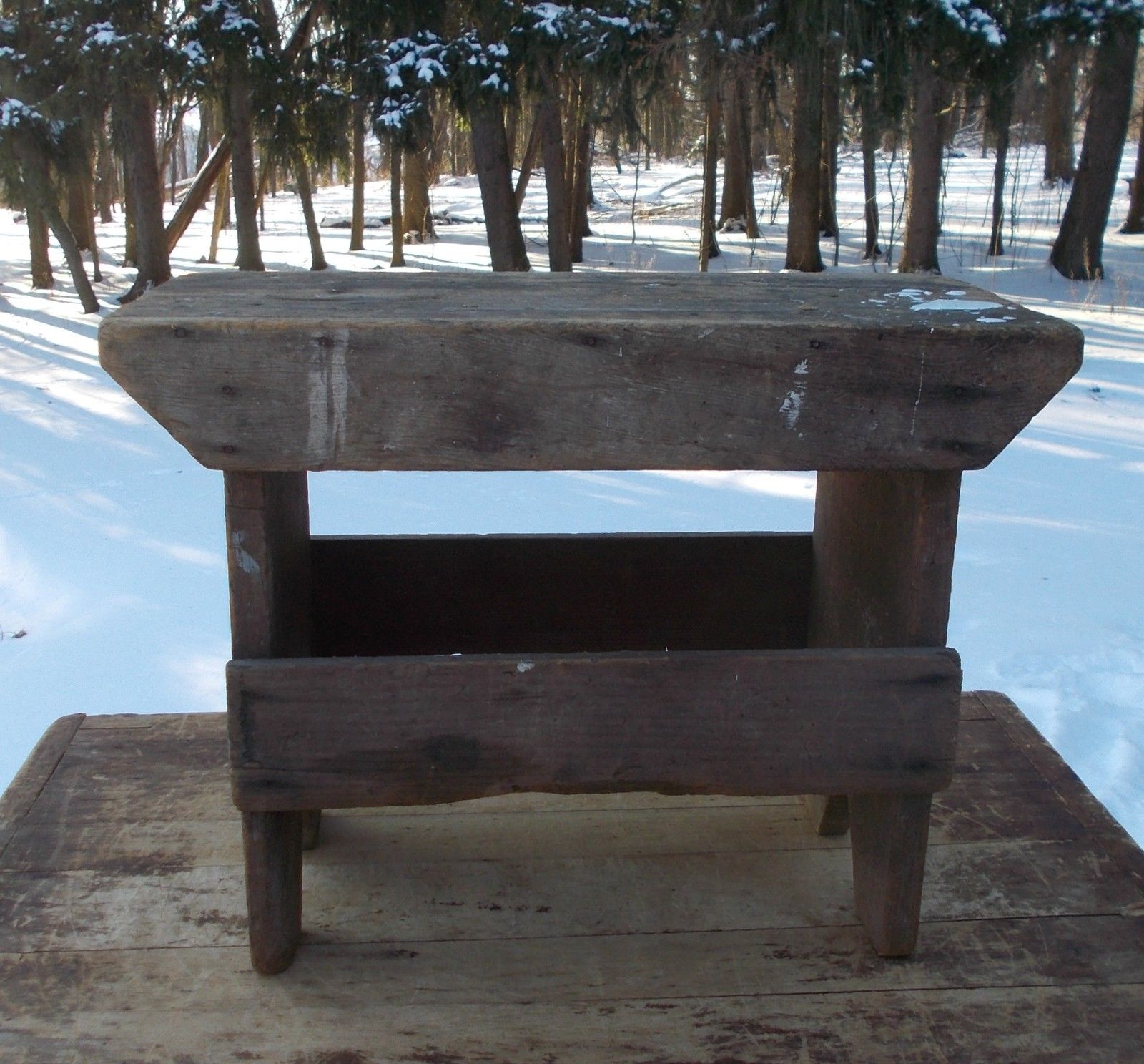 Title (ebay affiliate link): Primitive Farm House Old Wood Foot Stool / Crock Bench / Make Do Shelf