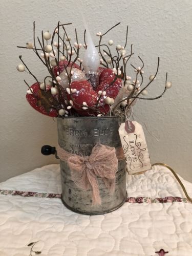 Title (ebay affiliate link): Primitive Grungy Valentine Heart Ornies Bromwell Sifter Lamp Gathering Handmade