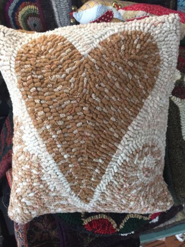Title (ebay affiliate link): Hand Made Primitive Style Hooked Rug Pillow Heart with swirl design