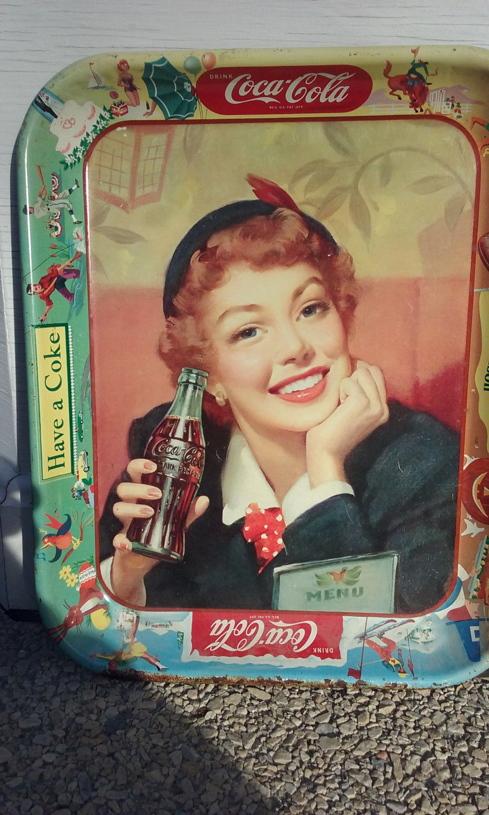 Title (ebay affiliate link): 1953 Coca Cola Serving Tray Vintage Coke Americana Antique Original Menu Girl