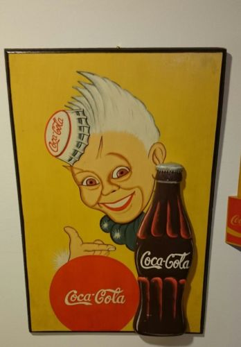Title (ebay affiliate link): Vintage Yellow Coca Cola Bottle Wooden Sign Collectible