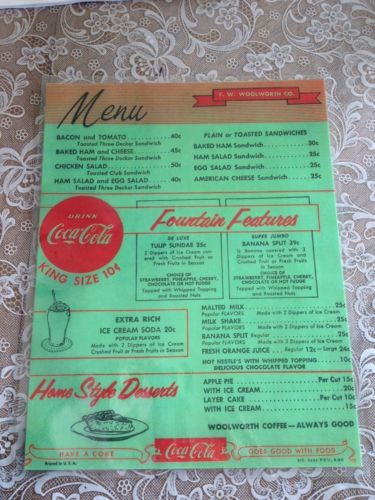 Title (ebay affiliate link): Vintage Coca Cola Diner Menu with WOOLWORTH Laminated Coke Menu Free usa Ship