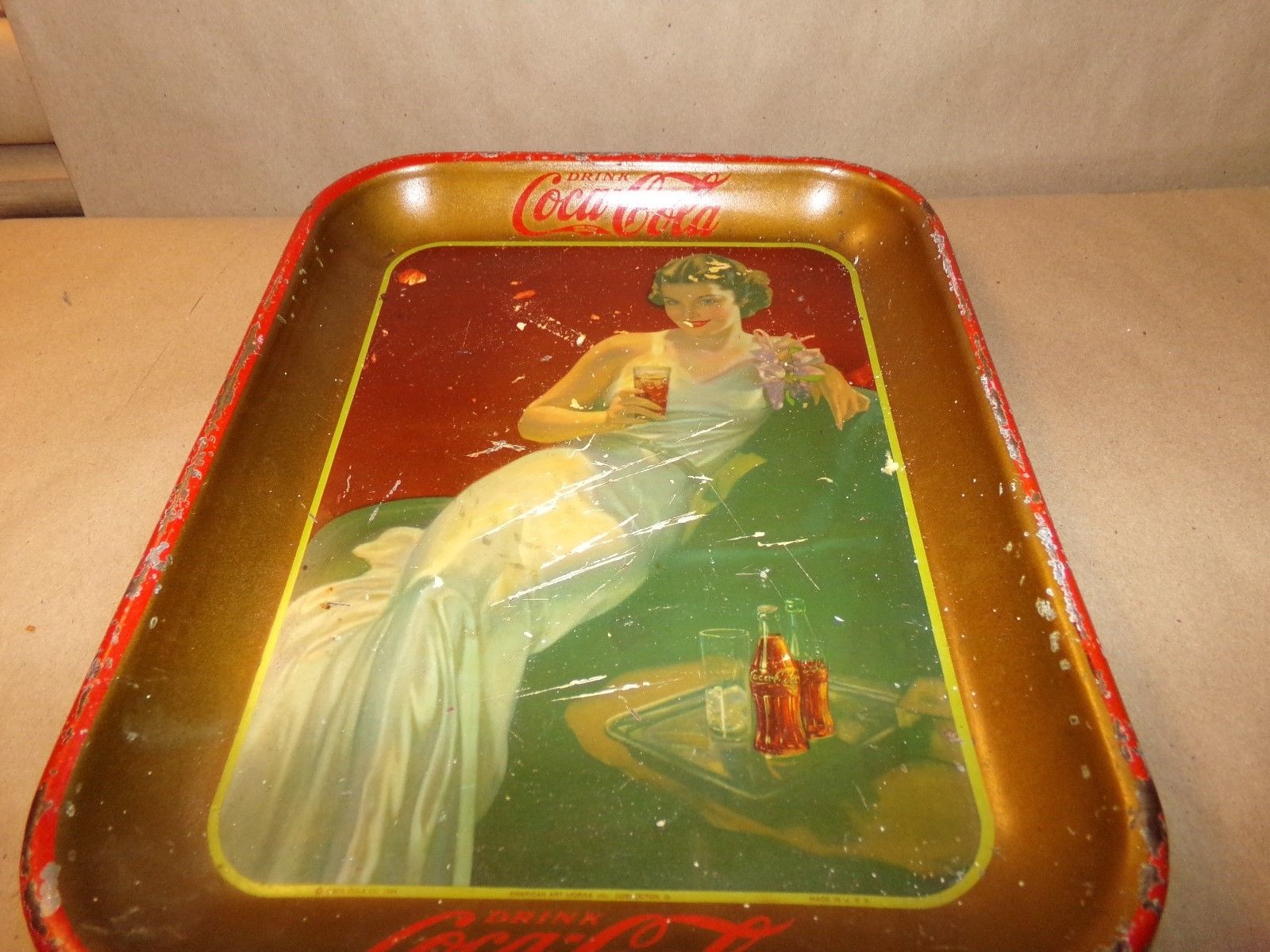 Title (ebay affiliate link): Coca Cola 1936 Tin Tray Glamour Girl 13"x10"