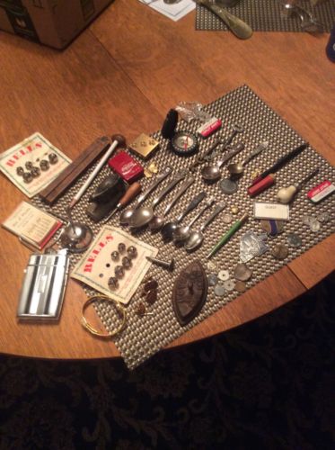 Estate Junk Drawer Lot Coca Cola, Advertising, Spoons, Tokens, Watch, Cast Iron