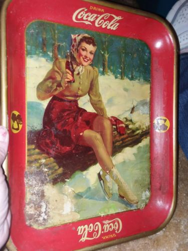 Title (ebay affiliate link): 1941 Coca Cola tray girl ice skating winter Christmas metal serving