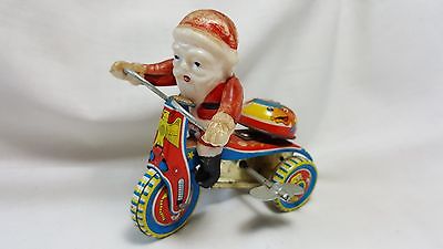 Vintage Working Tin Litho & Celluloid Wind-Up Santa on Tricycle Bike with Bell