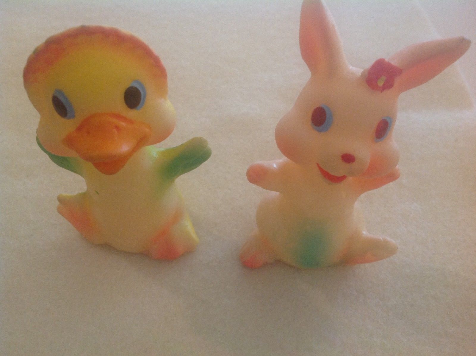 Vintage Rubber Easter Chick and Bunny with Squeaky ~ 3"