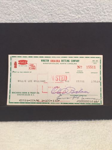 Title (ebay affiliate link): 1968 Winston Coca-Cola Bottling Co. Winston-Salem, NC North Carolina Bank Check