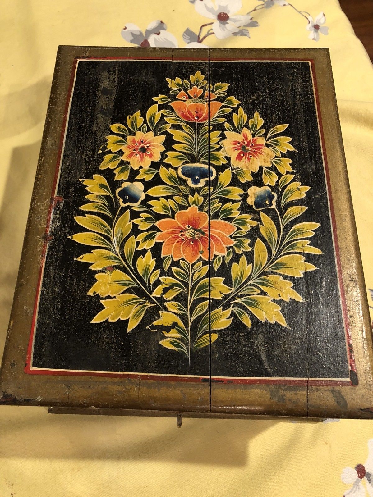 Title (ebay affiliate link): Vintage Cigar Box Humidor Glass & Mirror Drawer Painted or pistol case?