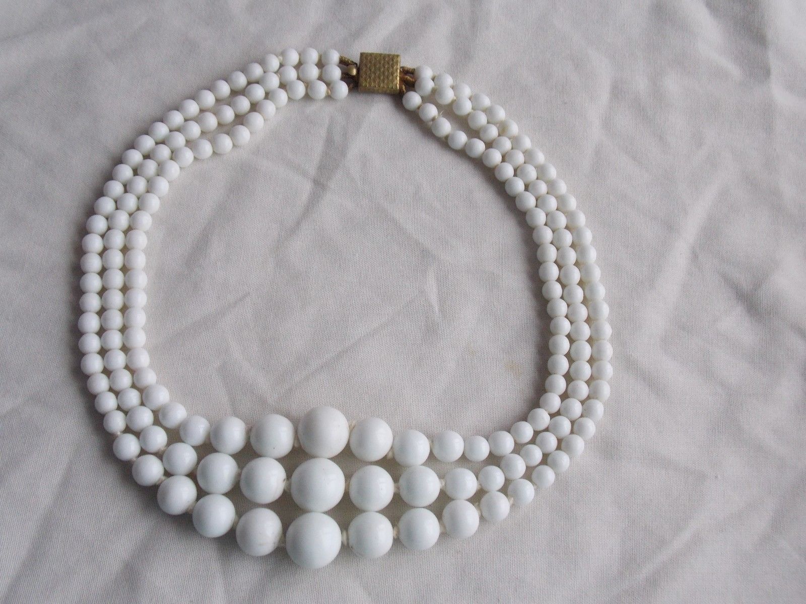 Title (ebay affiliate link): VINTAGE HEAVY 1930/40S 3 STRAND WHITE MILK GLASS BEADED NECKLACE