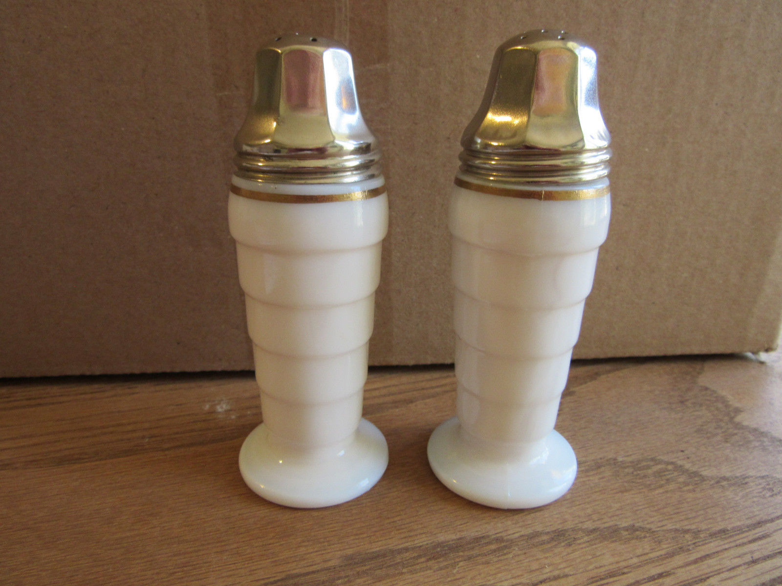 Title (ebay affiliate link): vintage milk glass salt and pepper shakers almost 4 1/2 '''' tall