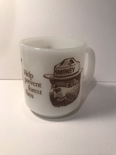 Title (ebay affiliate link): Vintage Smokey the Bear Coffee Mug - Help Prevent Forest Fires - Milk Glass cup