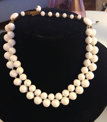 Title (ebay affiliate link): Vintage Estate 16" White Milk Glass Graduated Bead Choker 2 Strand Necklace