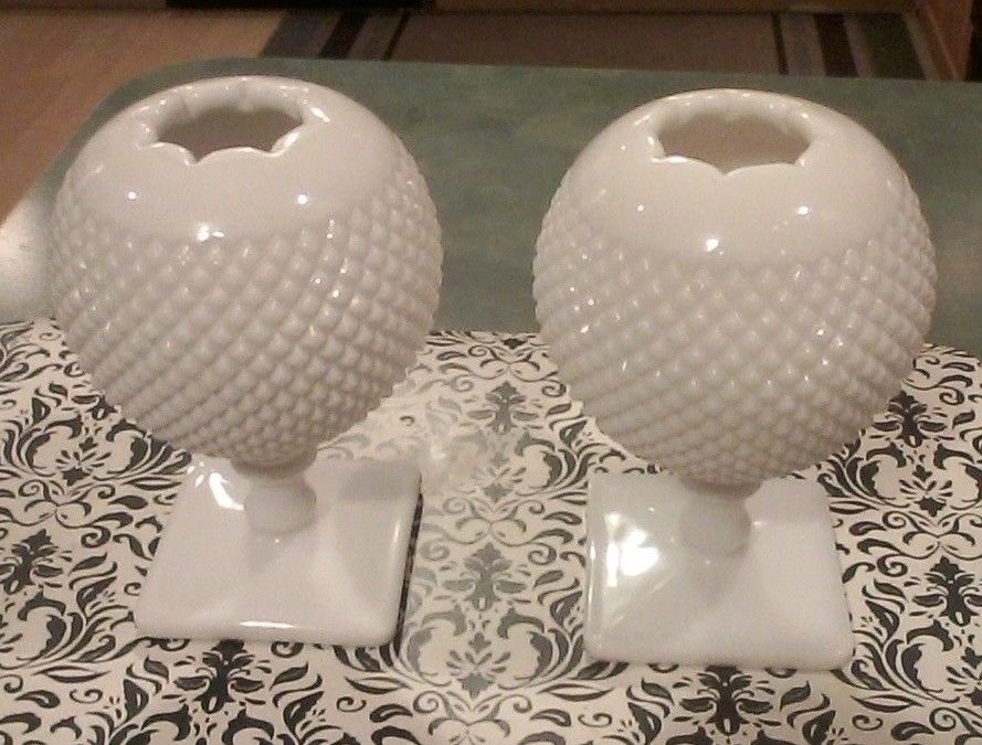 Title (ebay affiliate link): Westmoreland white Milk Glass English Hobnail Ivy Ball Pedestal Vase Set of 2