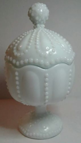 Title (ebay affiliate link): Antique Vintage White Milk Glass Pedestal Candy Dish W/ Lid - Egg Shaped