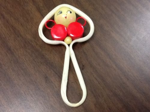 VINTAGE BABY RATTLE PLASTIC TOY YELLOW RED WHITE INFANT