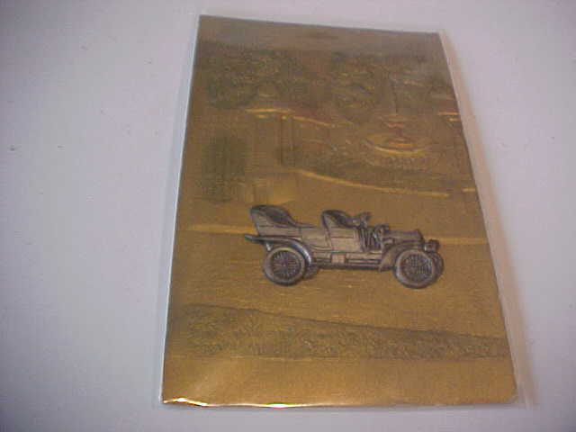1910 POSTCARD WITH METAL ANTIQUE CAR ATTACHED