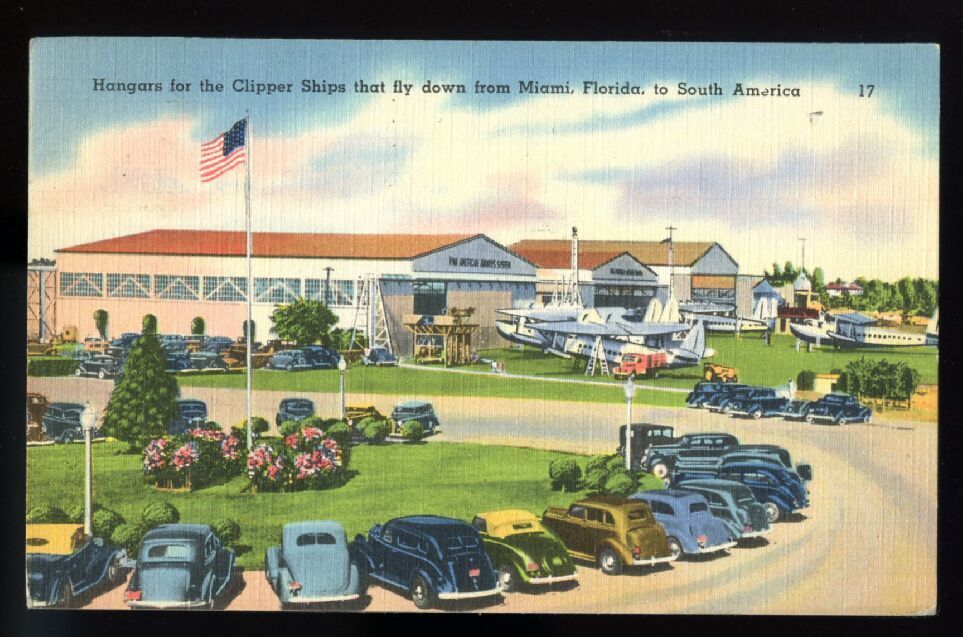 Title (ebay affiliate link): Clipper Ship Hangers Miami Florida to South America 1930s Linen Postcard