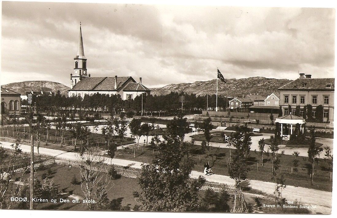 Kirken og Den off. skole, Bodo photo Norway Postcard