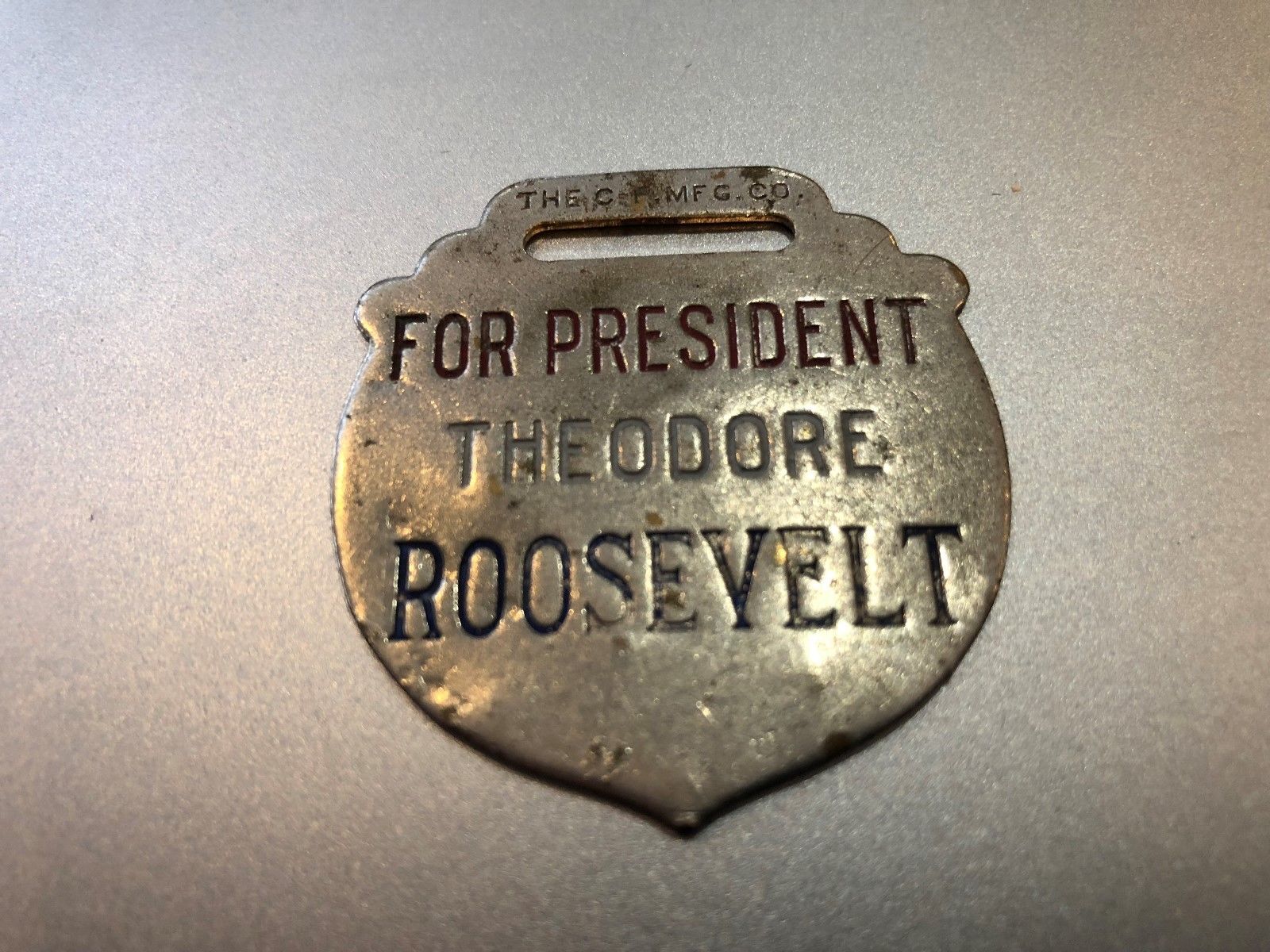 Title (ebay affiliate link): 1904 Roosevelt watch Fob Medallion in shape of shield