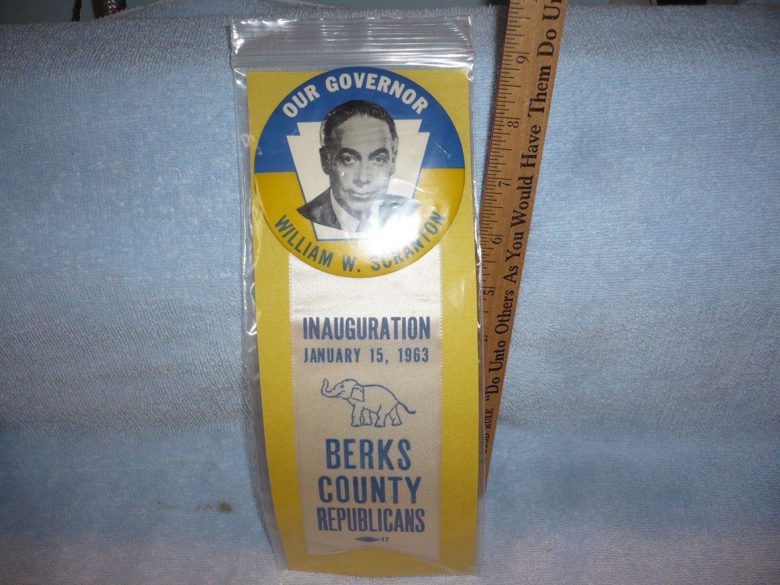 GOVERNOR WILLIAM SCRANTON INAUGURATION PINBACK BUTTON RIBBON berks PA 1963