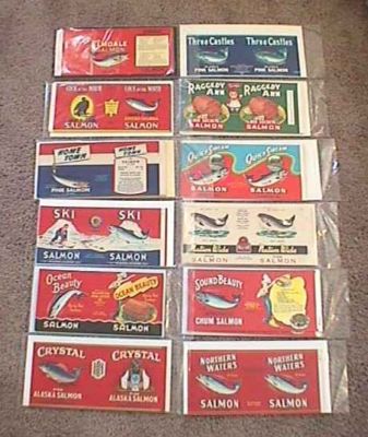 249 NICE asst SALMON CAN LABELS Crystal Mermaid Beauty