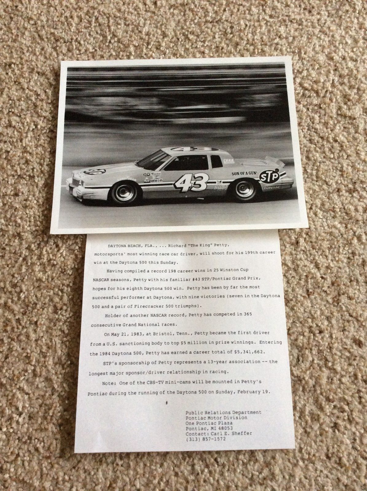 Title (ebay affiliate link): 1984 Pontiac Richard petty at Daytona original press release 8X10 photo