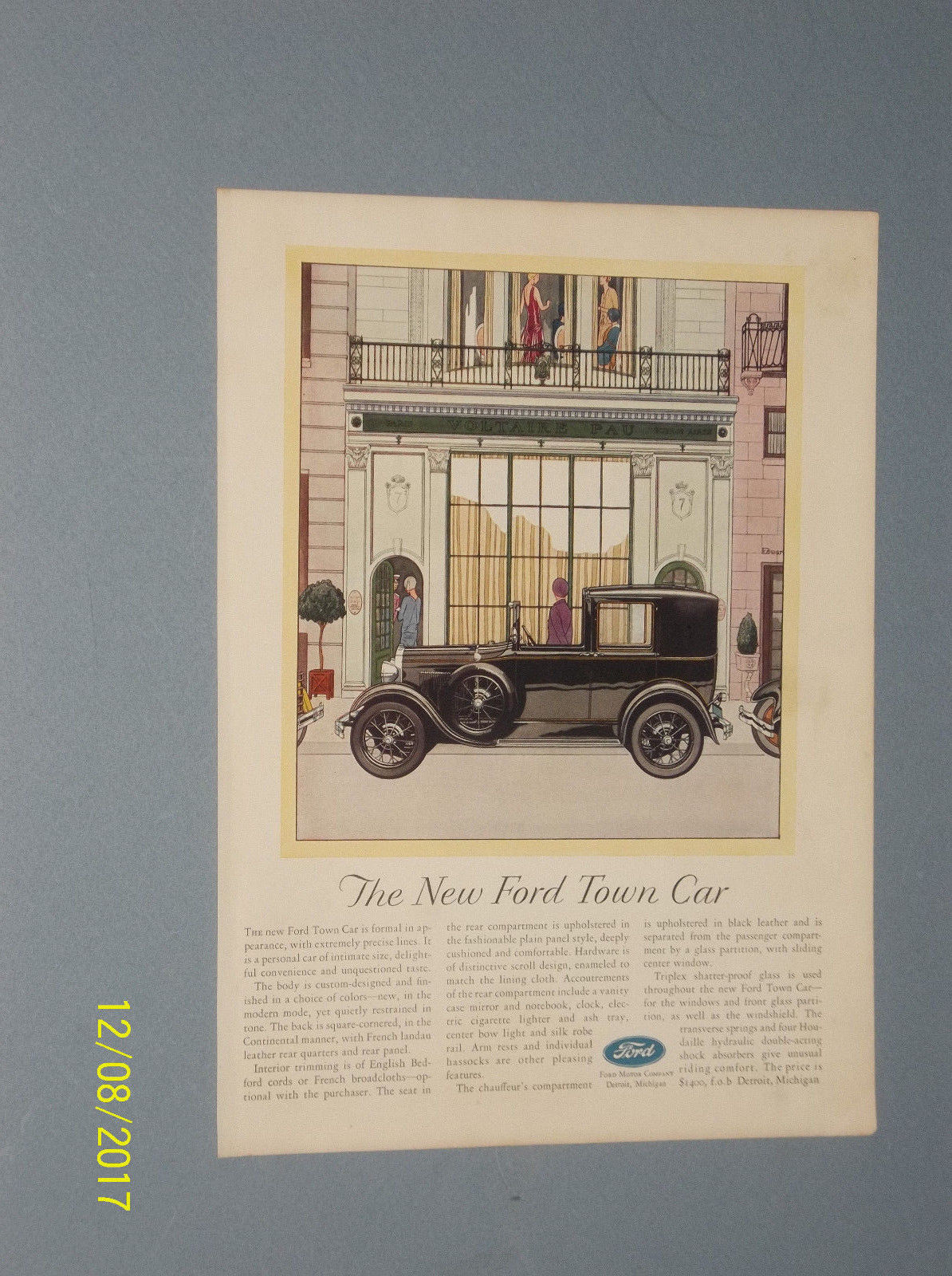 Title (ebay affiliate link): 1929 FORD TOWN CAR AD CHAUFFEUR COMPARTMENT W/ GLASS PARTITION ART DECO AD