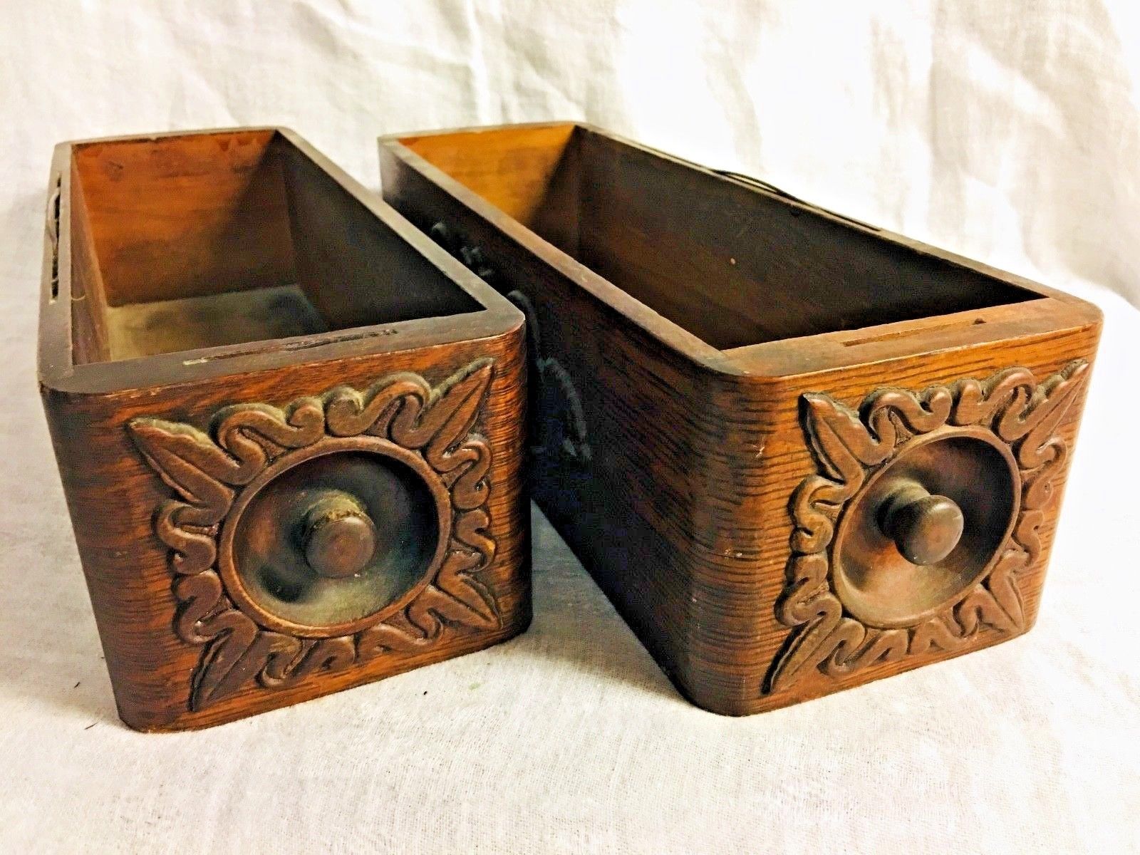 Set 2 Antique Treadle Sewing Cabinet Drawers Wood Cubby Vintage Ornate