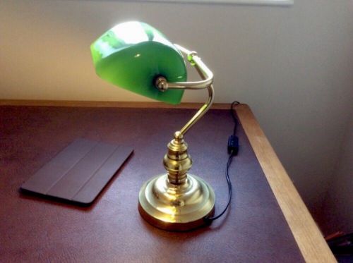 Title (ebay affiliate link): Vintage Deco Style Bankers Desk Lamp Brass & Green Glass Shade In Good Condition