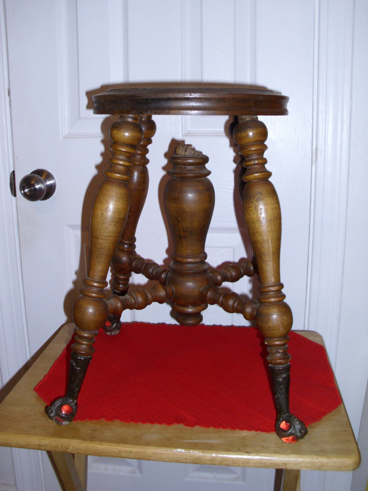 Title (ebay affiliate link): Salvaged Furniture: Piano Stool Base w/ Claw & Glass Ball Feet