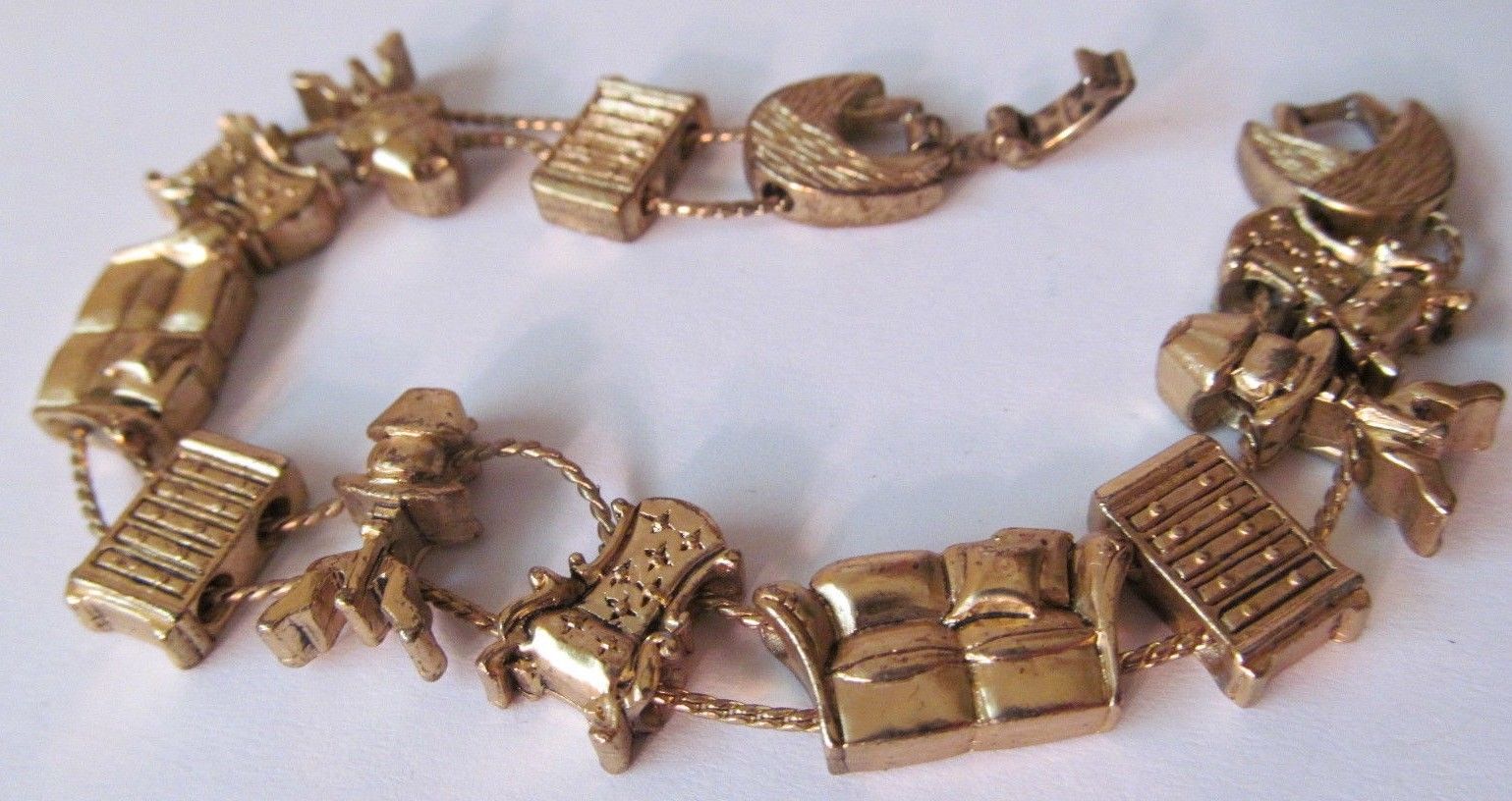 Title (ebay affiliate link): TOFA Charm Bracelet 1995 11 Antique Furniture Charms On Double Chain Link